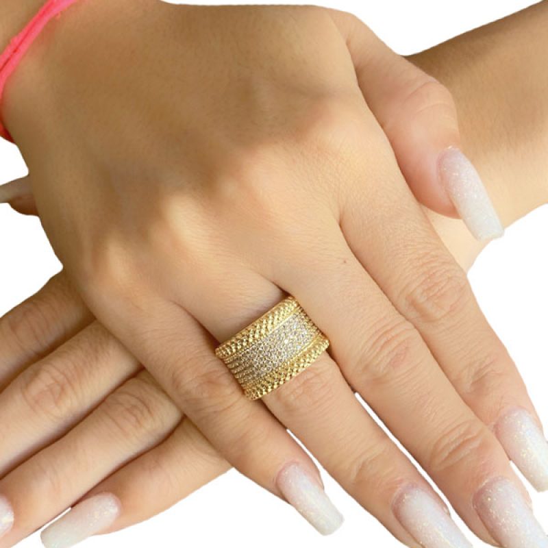 Anel Meio Trabalhado Cravejado Banhado em Ouro 18k