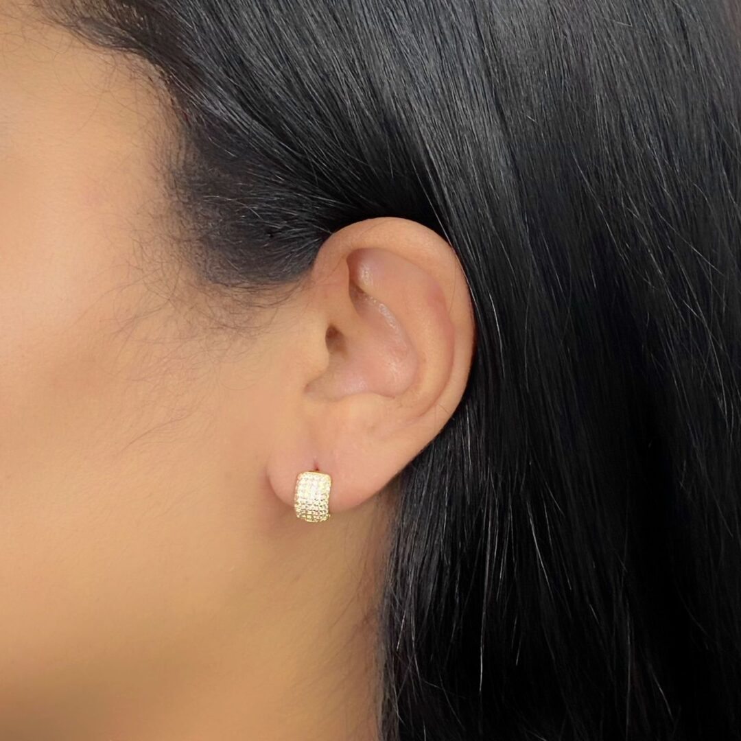 Brinco Argola Inglêsa Cravejado Banhado em Ouro 18k