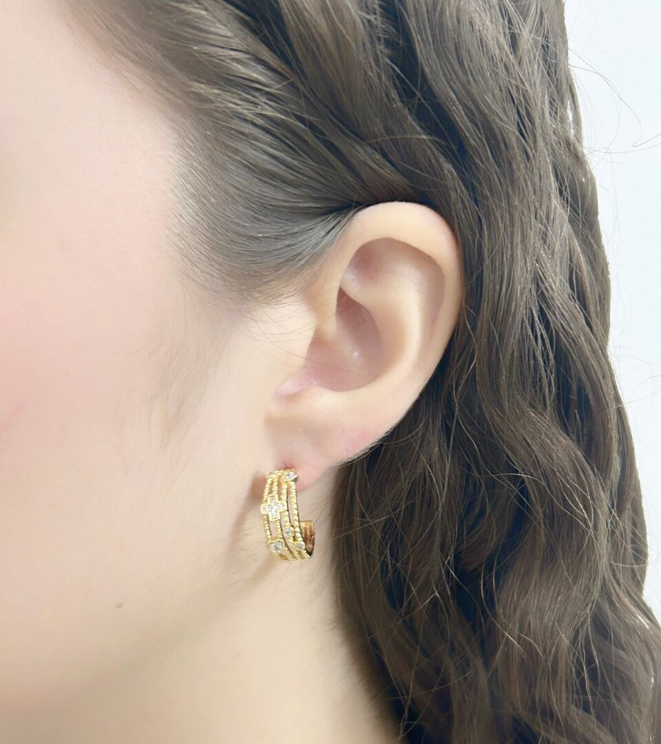 Brinco Argola 4 Fios Minimalista Cravejado Banhado em Ouro 18k