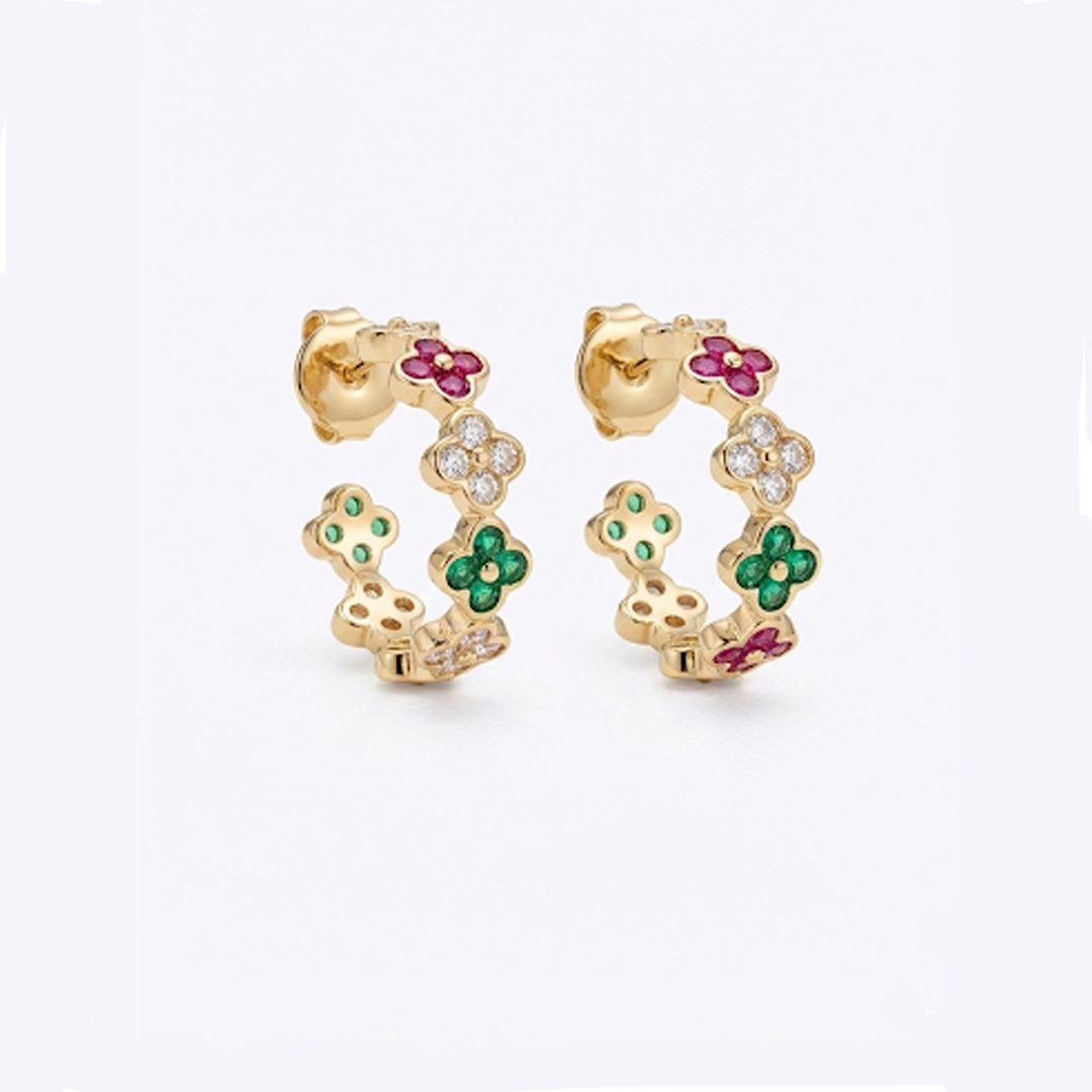 Brinco Argola Trevos Cravejado Banhado em Ouro 18k