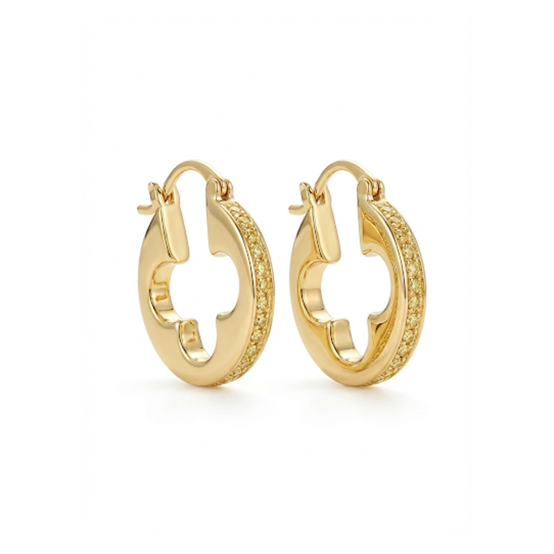Brinco Argola Trevo Vazado Cravejado Banhado em Ouro 18k
