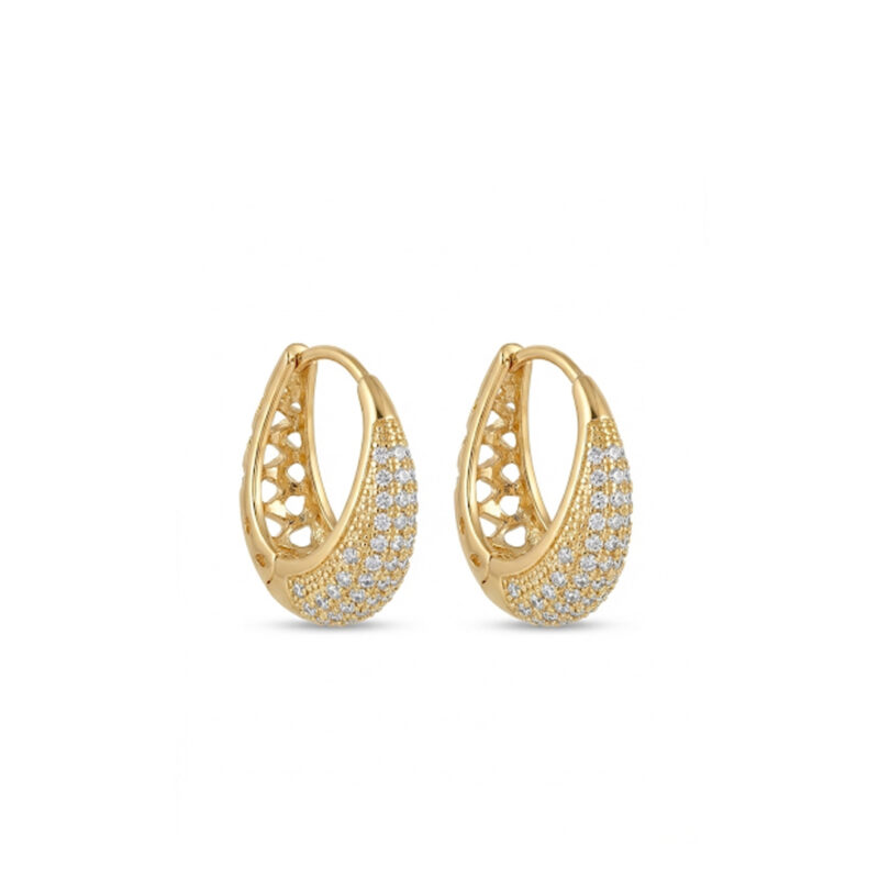 Brinco Gota Trabalhada Cravejada Banhada em Ouro 18k