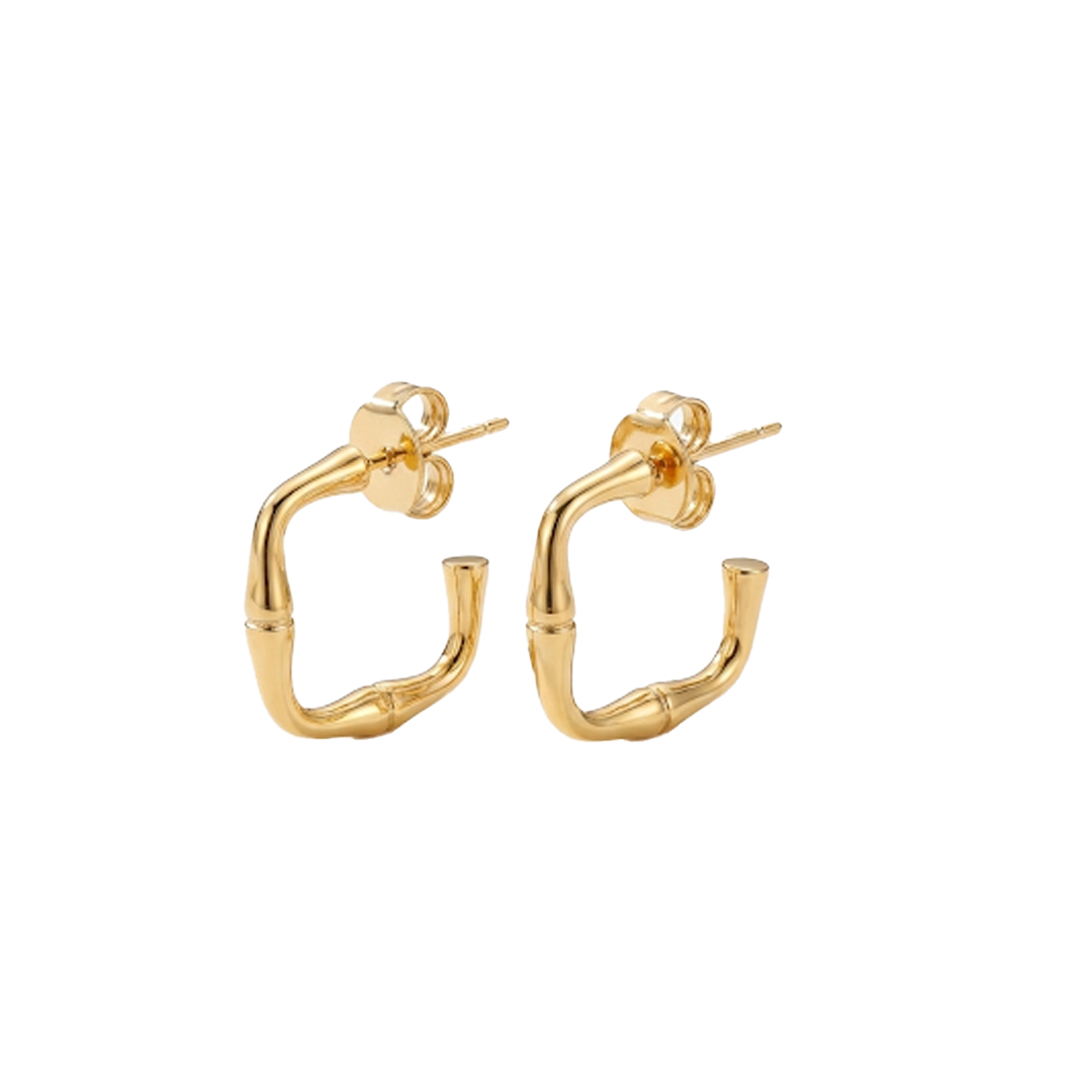 Brinco Argola Quadrado Bambu Banhado em Ouro 18k