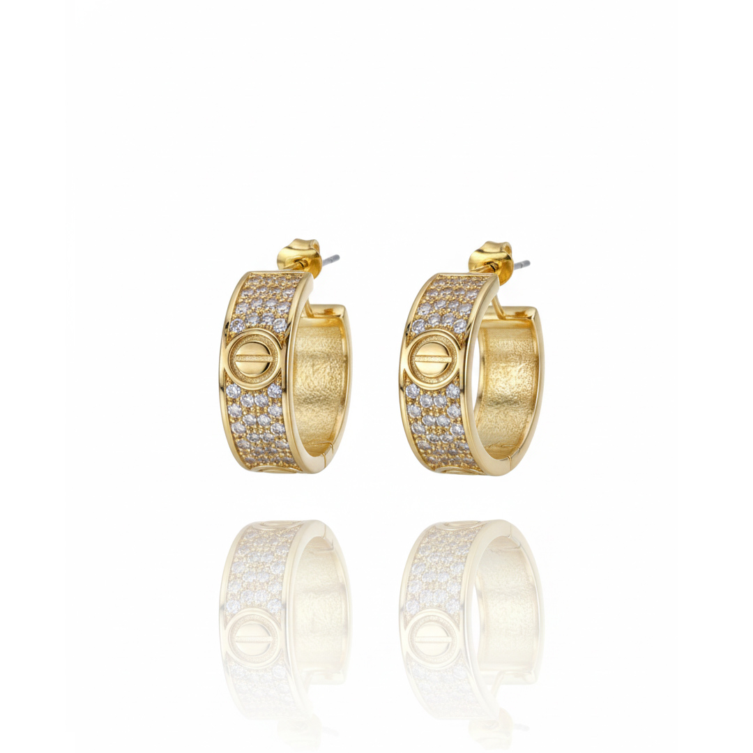 Brinco Argola Trabalhado Cravejado Banhado em ouro 18k