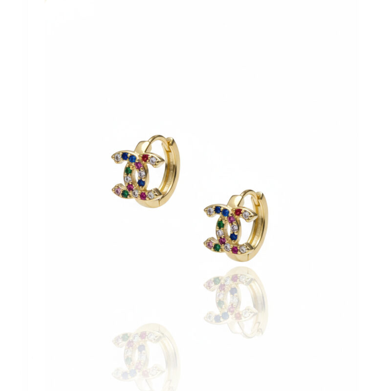 Brinco Argola C Cravejado Banhado em Ouro 18K