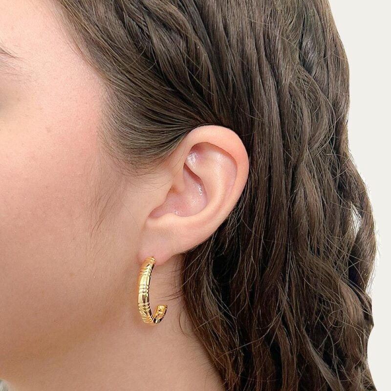 Brinco Meia Argola Trabalhada Cravejado Banhado em Ouro 18k – Collab Cecília Lucas