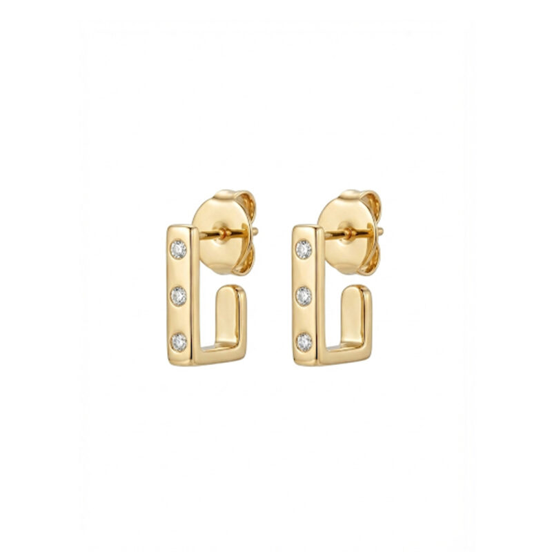 Brinco Meia Argola Quadrada Cravejado Banhado em Ouro 18k