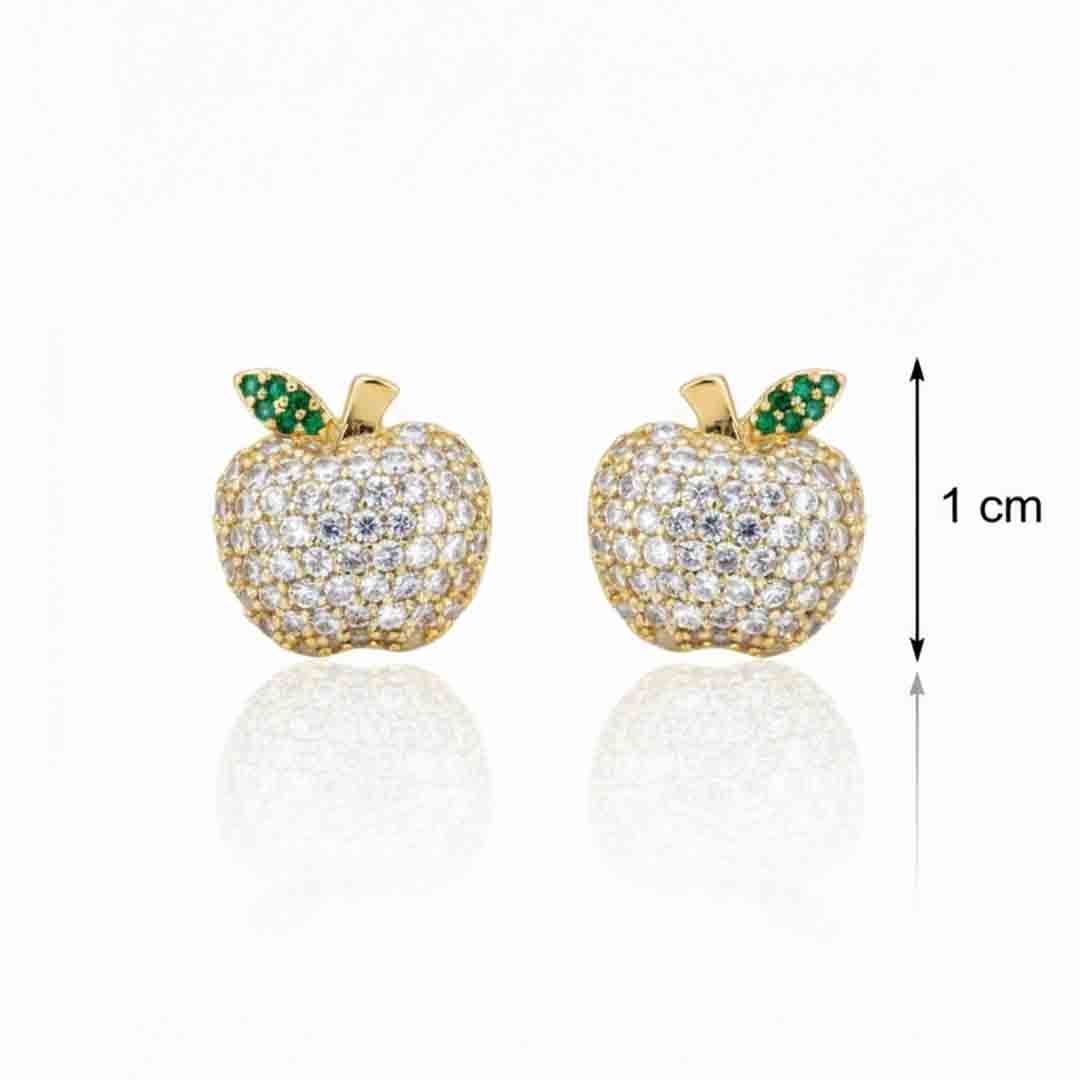 Brinco Maça Cravejado Banhado em Ouro 18k