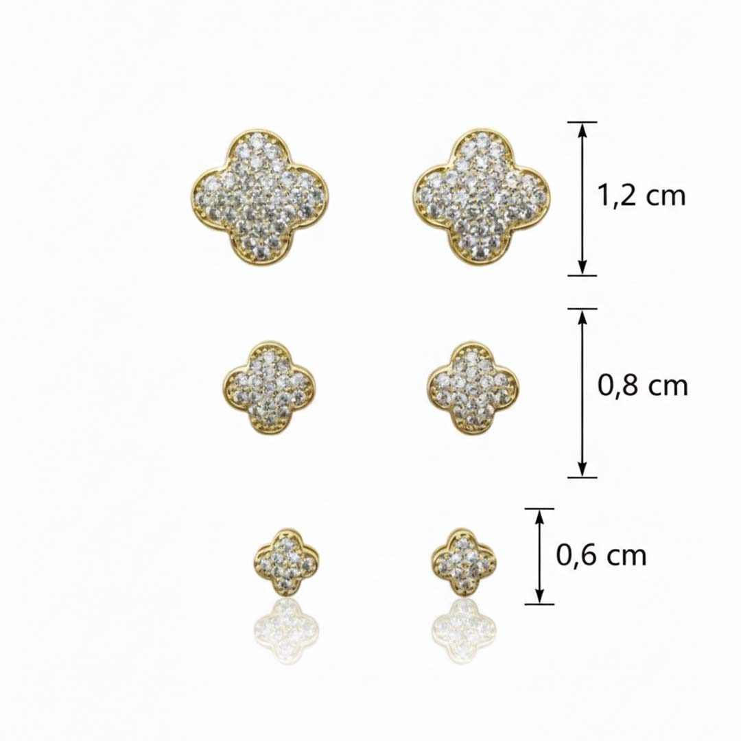 Brinco Trio Trevo Microcravejado Banhado em Ouro 18k
