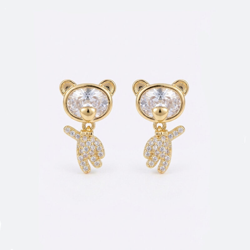 Brinco Ursinho Cravejado Banhado em Ouro 18k
