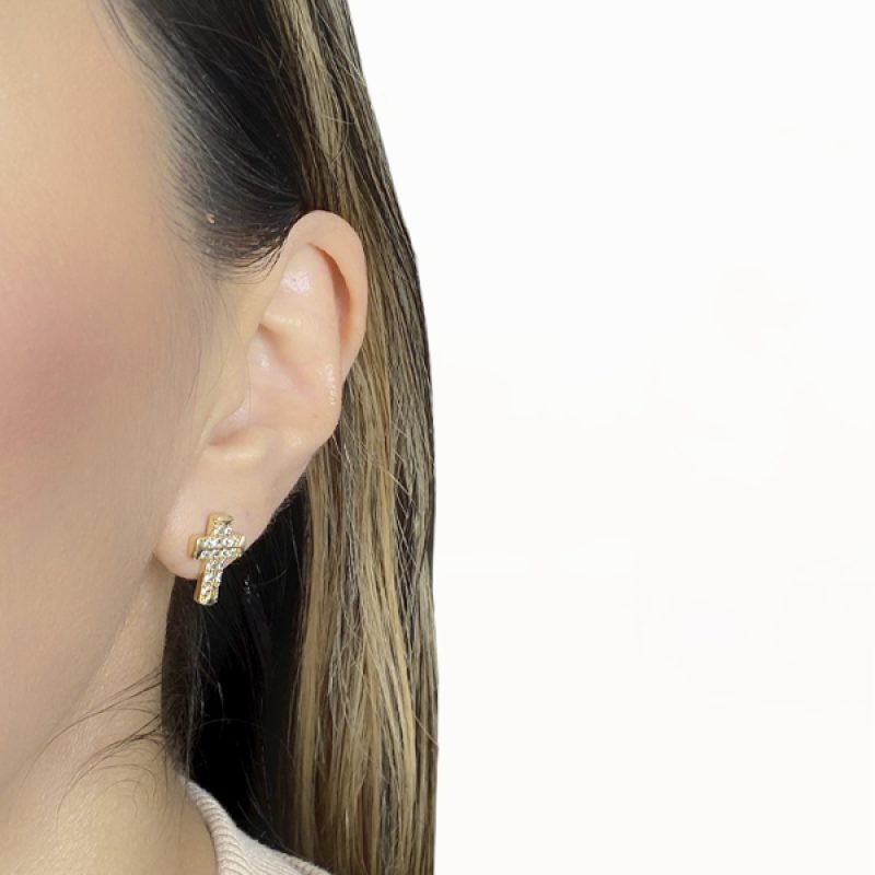 Brinco Crucifixo Cravejado Banhado em Ouro 18K