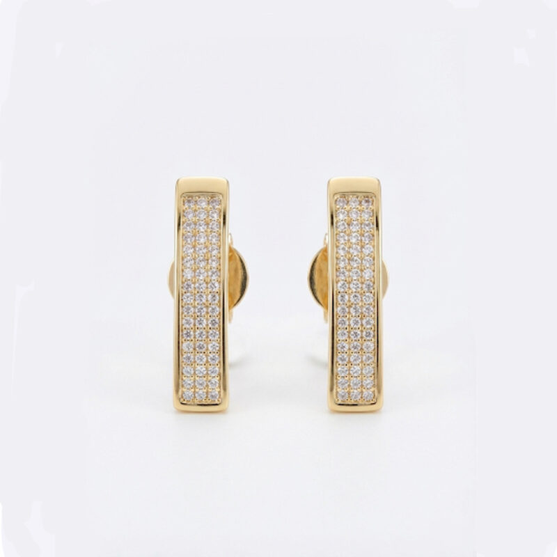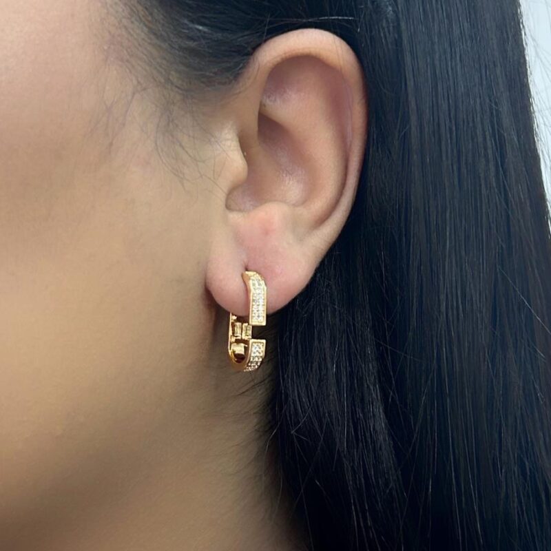 Brinco Quadrado Trabalhado Cravejado Banhado em Ouro 18k