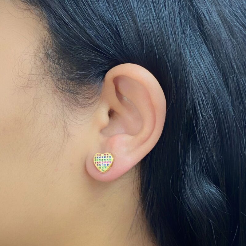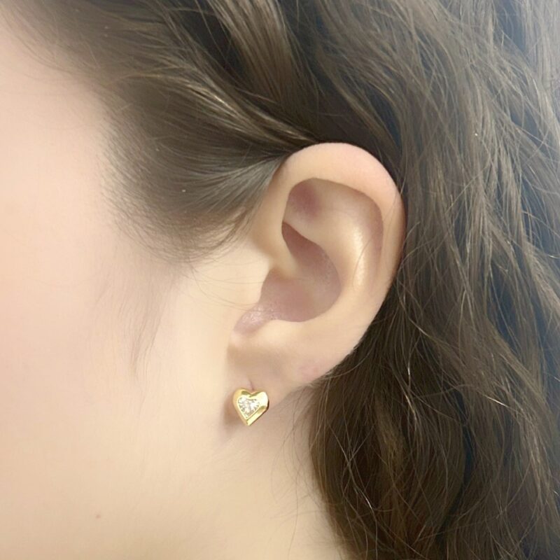 Brinco Coração P Cravejado Banhado em Ouro 18K