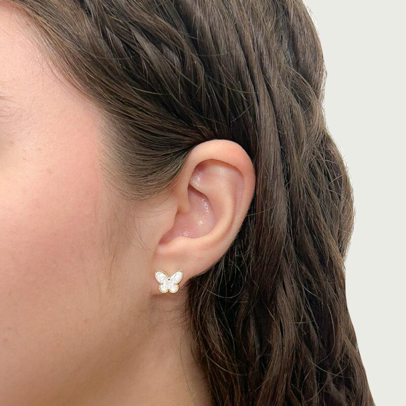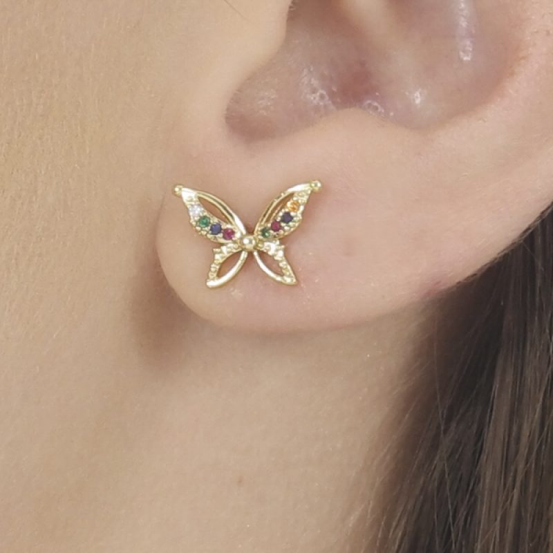 Brinco Borboleta Cravejado Banhado em Ouro 18k