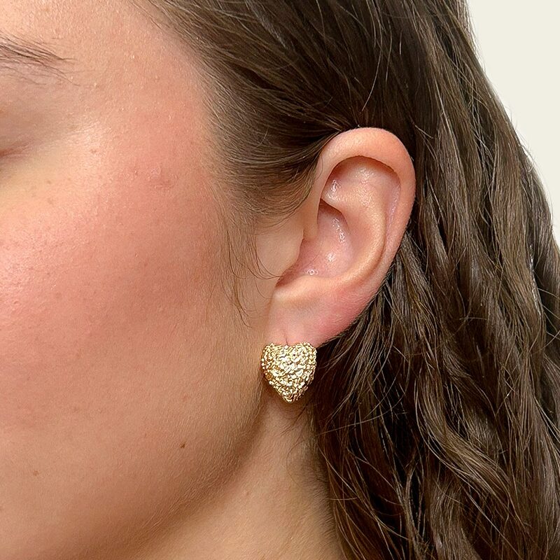 Brinco Click Coração Trabalhado Banhado em Ouro 18k
