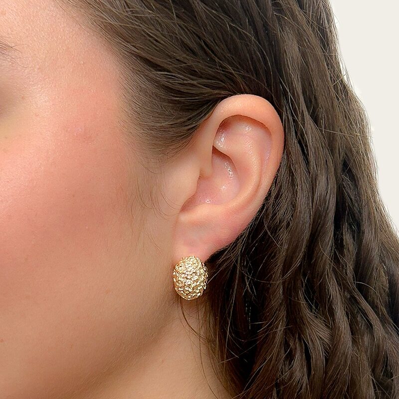 Brinco Click Oval Trabalhado Banhado em Ouro 18k