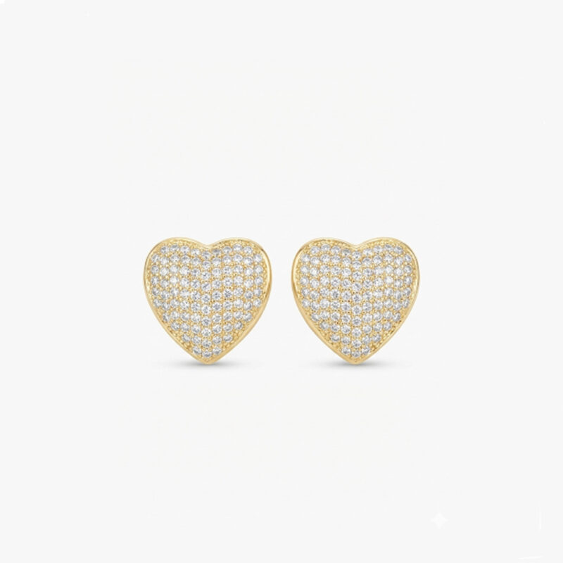 Brinco Coração Cravejado Banhado em Ouro 18K