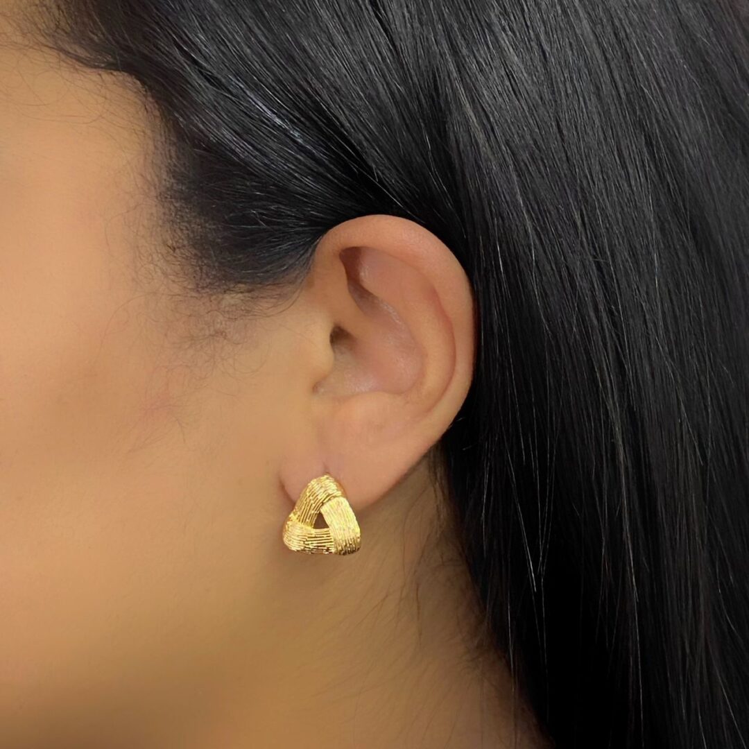 Brinco triangulo Trabalhado Banhado em Ouro 18k