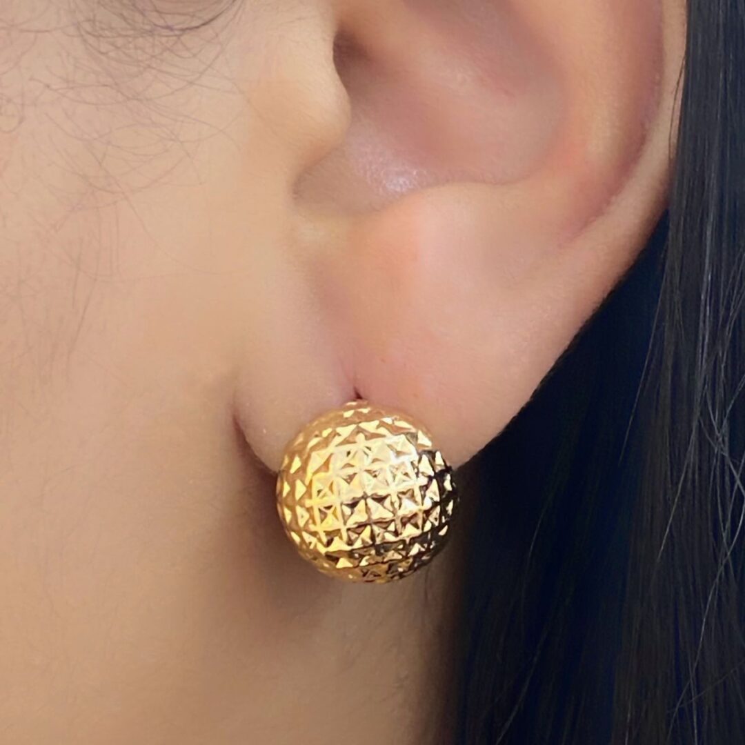 Brinco Meia Esfera Trabalhada Banhada em Ouro 18k