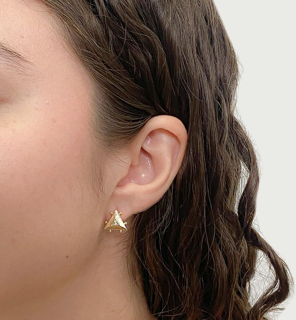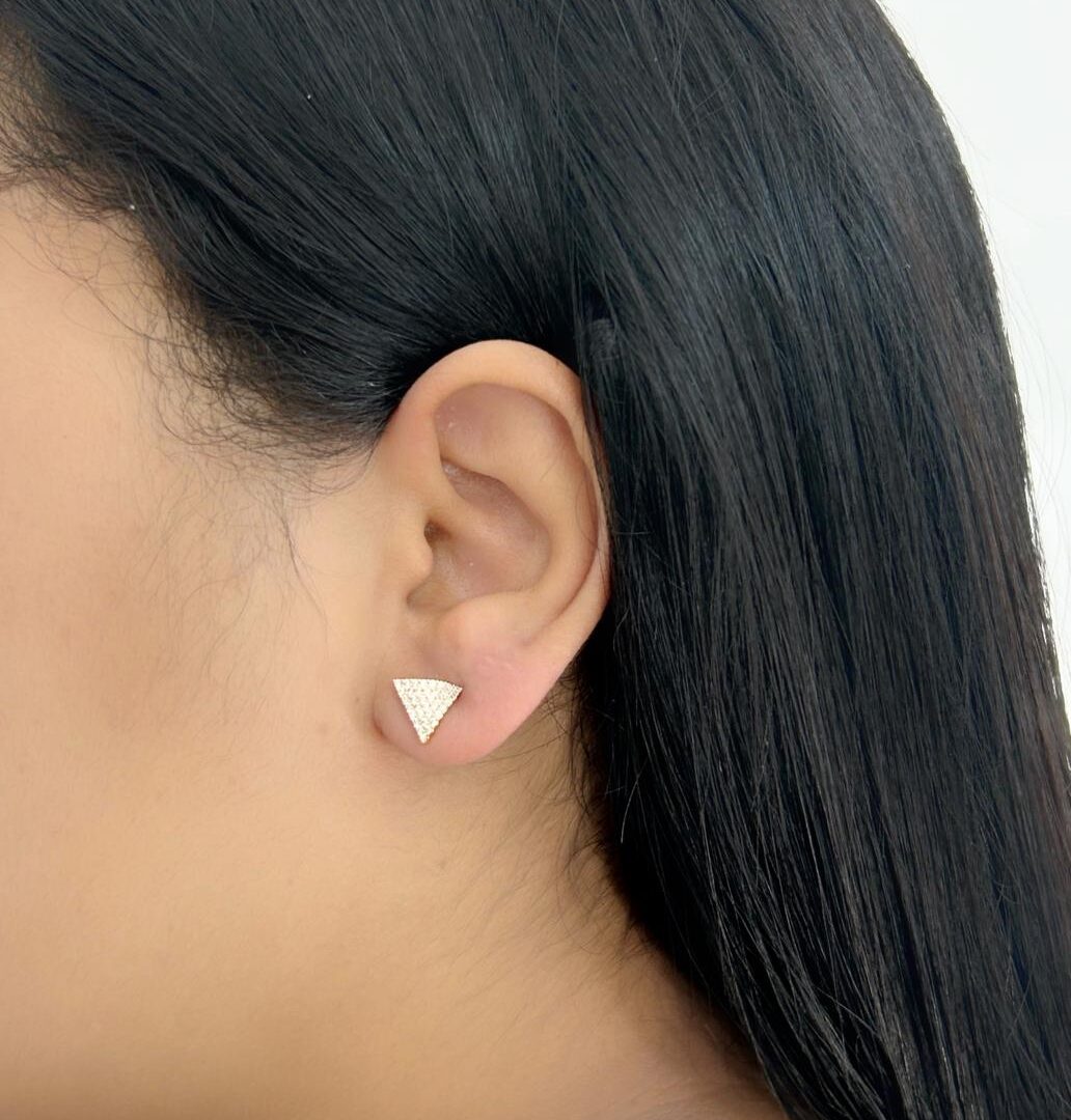 Brinco Triângulo Cravejado Banhado em Ouro 18K