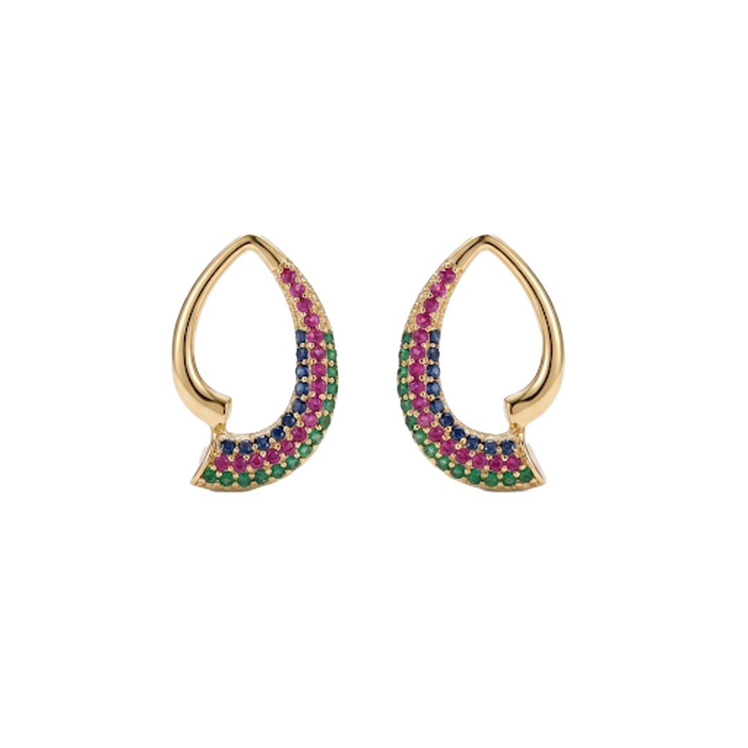 Brinco Gota Vazado Meio Cravejado Banhado em Ouro18k