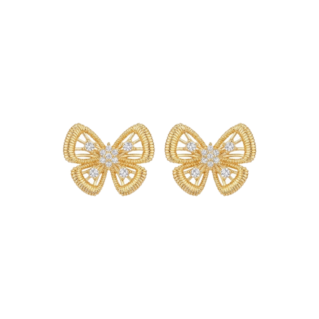 Brinco Laço Vazado Cravejado Banhado em Ouro 18k