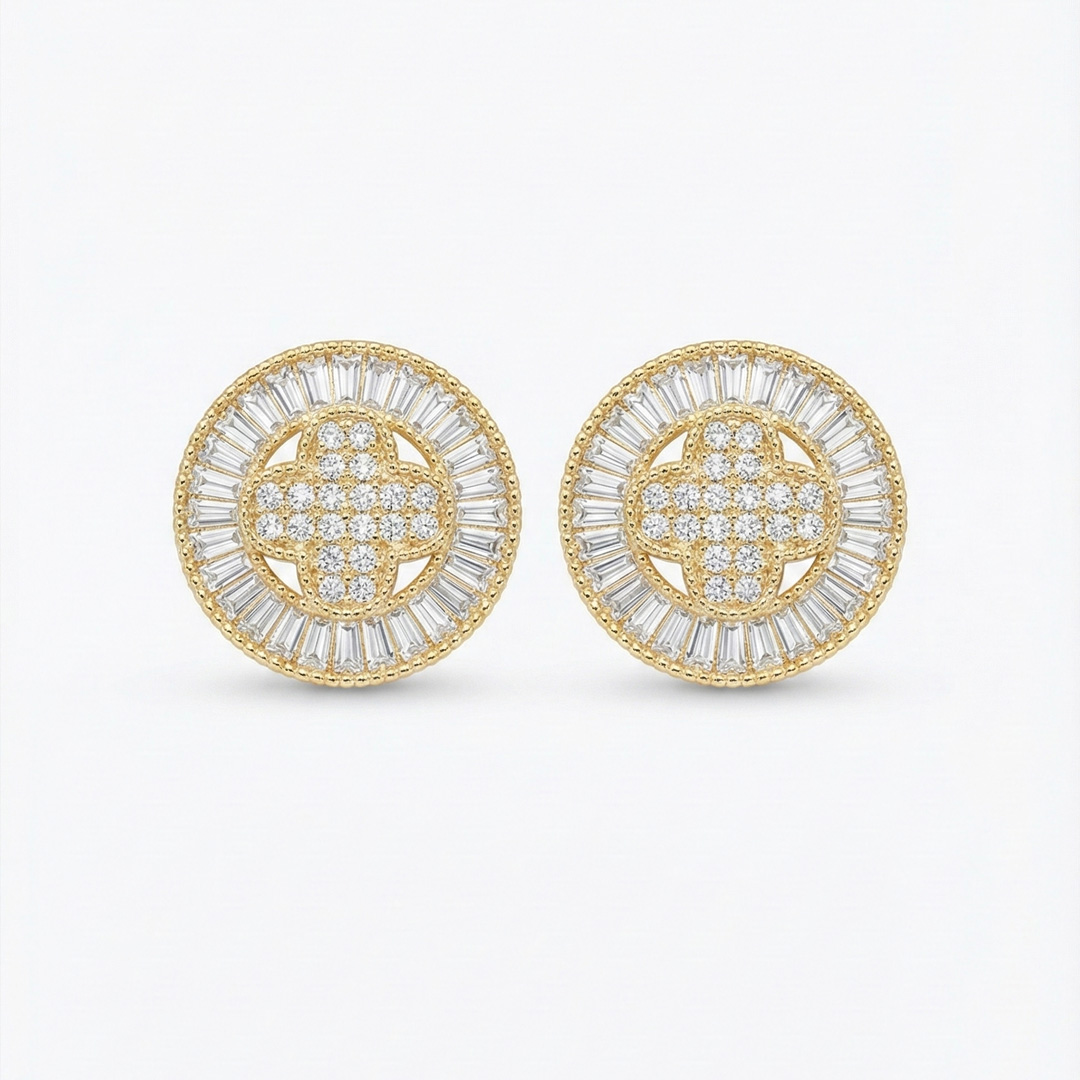 Brinco Mandala Trevo Cravejado Banhado em Ouro 18k