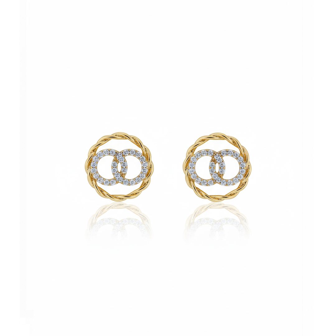 Brinco Mandala Torcido Elos Cravejado Banhado em Ouro 18k