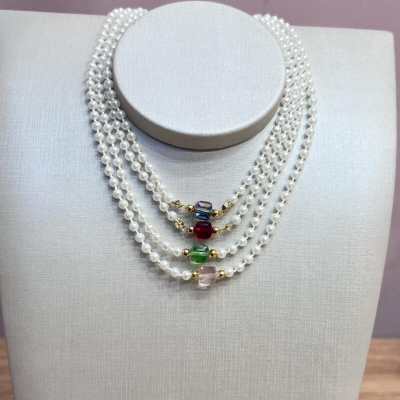 Choker Perola Triangulo Cravejado Banhado em Ouro 18k