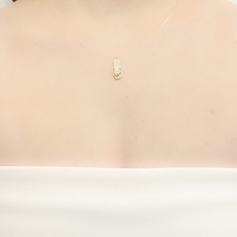 Colar Colar Fio de Nylon Chinelo Cravejado Banhado em Ouro 18k