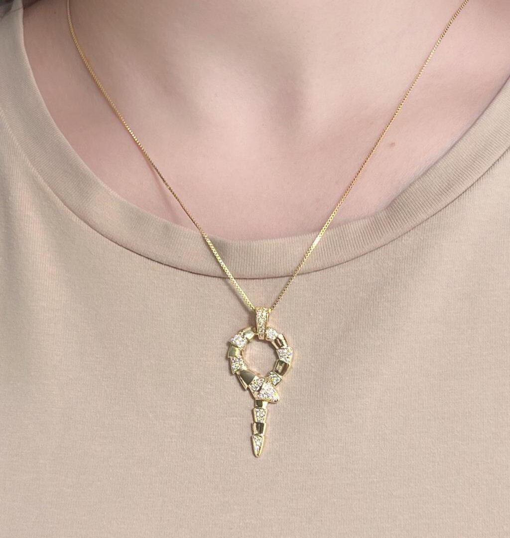 Conjunto Snake Cravejado Banhado em Ouro 18K