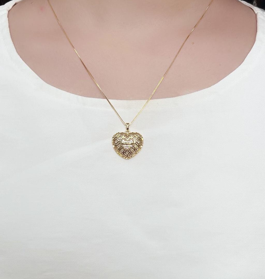 Colar Sagrado Coração Cravejado Banhado em Ouro 18K