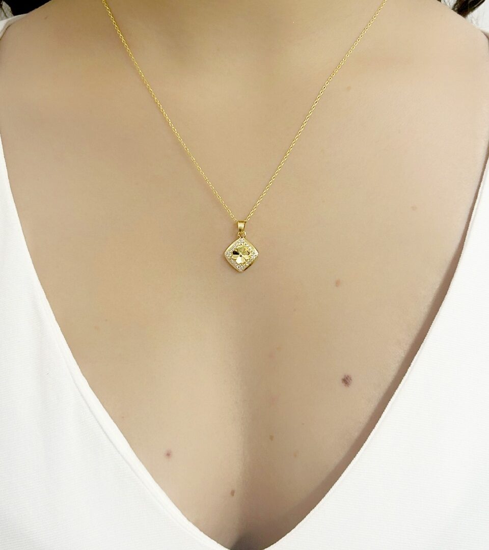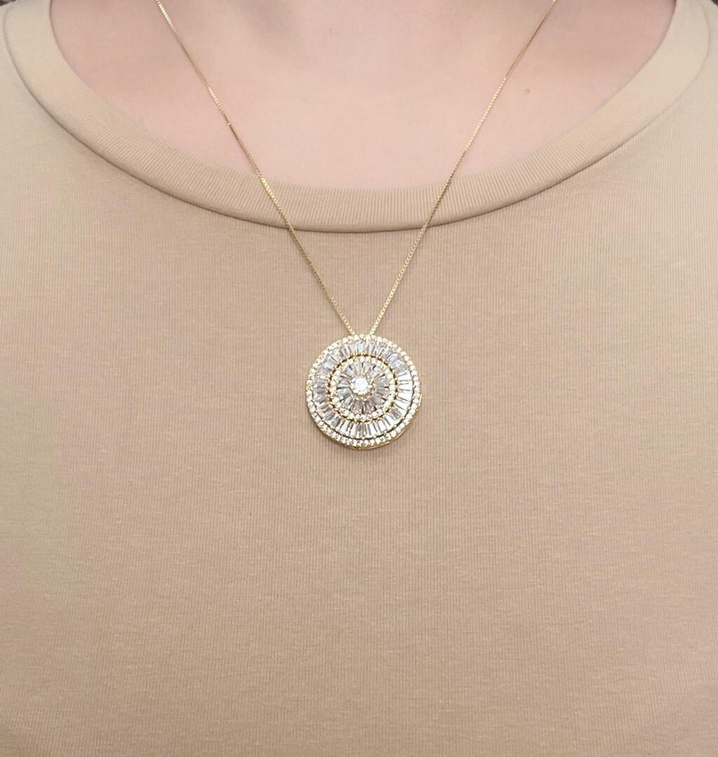 Colar Mandala Trevo Cravejado Banhado em Ouro 18k