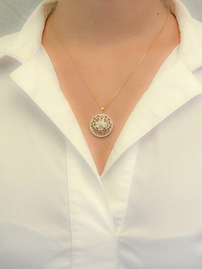 Colar Mandala Estrela Cravejado Banhado em Ouro 18k