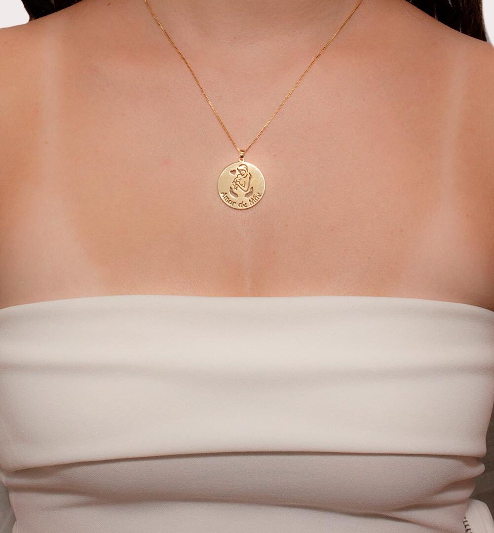 Colar Medalha Amor de Mãe Banhado em Ouro 18k