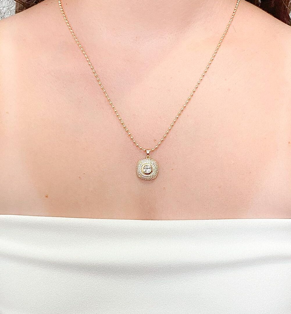 Colar Quadrado Cravejado Banhado em Ouro 18k