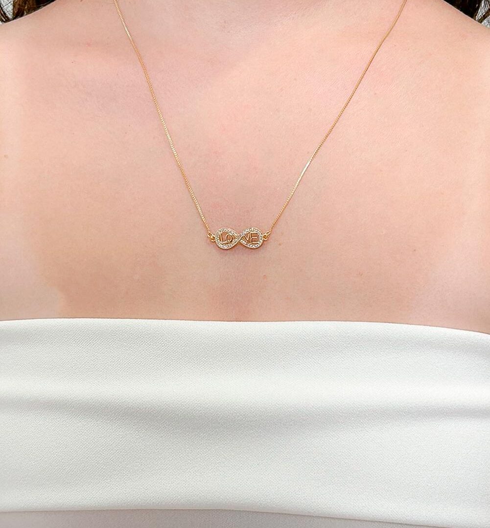 Colar Infinito Love Cravejado Banhado em Ouro 18k