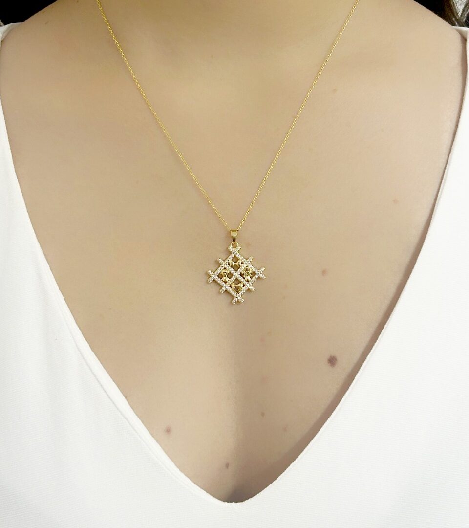 Colar Hexagonal Menina Trabalhado Cravejado Banhado em ouro 18k