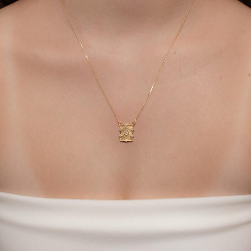 Colar Placa Coração Cravejado Banhado em Ouro 18k