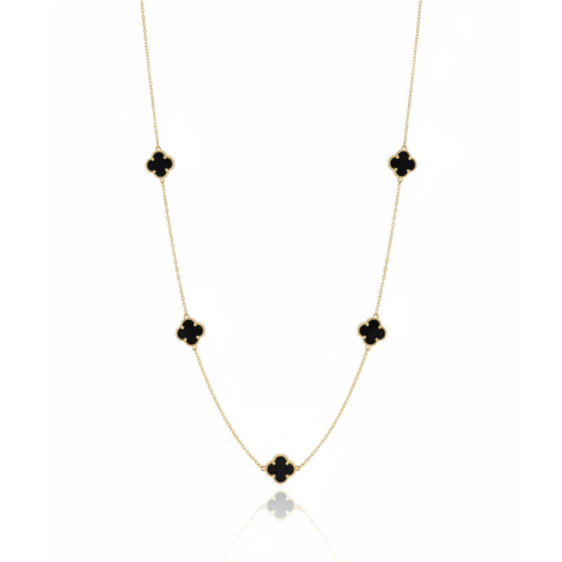 Colar Longo 5 Trevos 70 cm Banhado em Ouro 18k