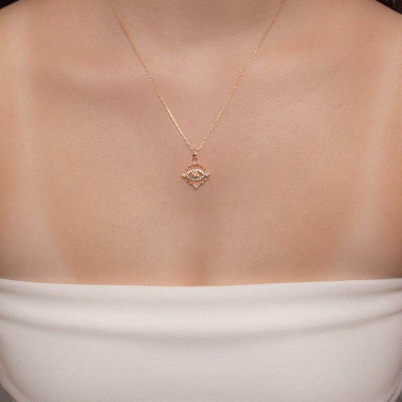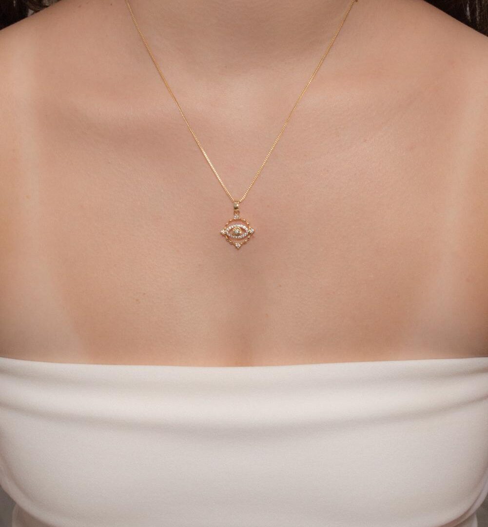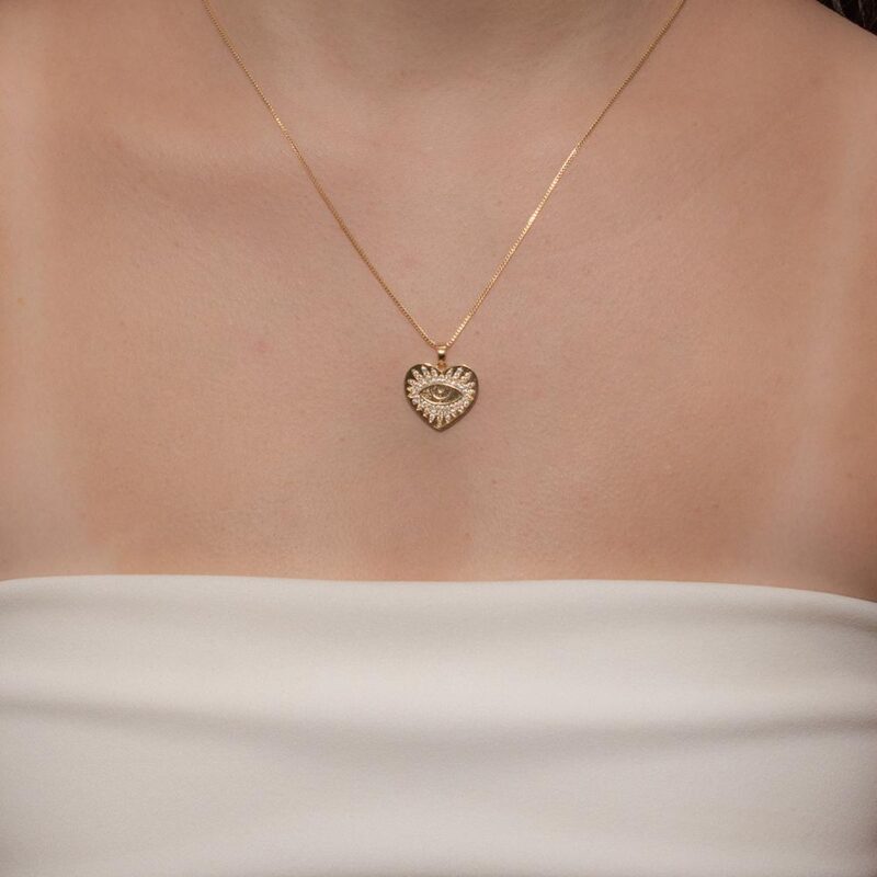 Colar Coração Olho Grego Cravejado Banhado em ouro 18k