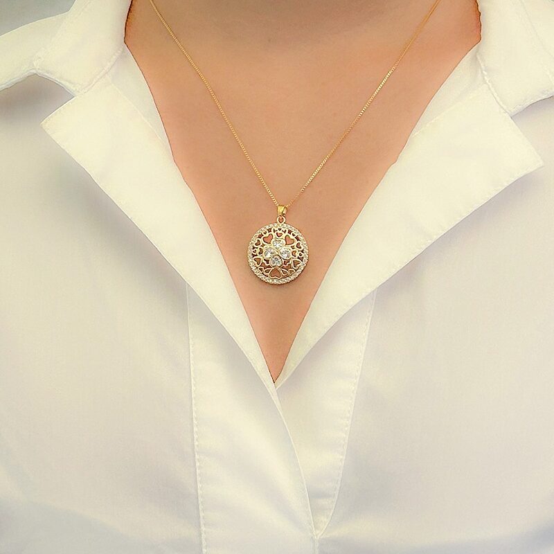 Colar Mandala Trevo Cravejado Banhado em Ouro 18k