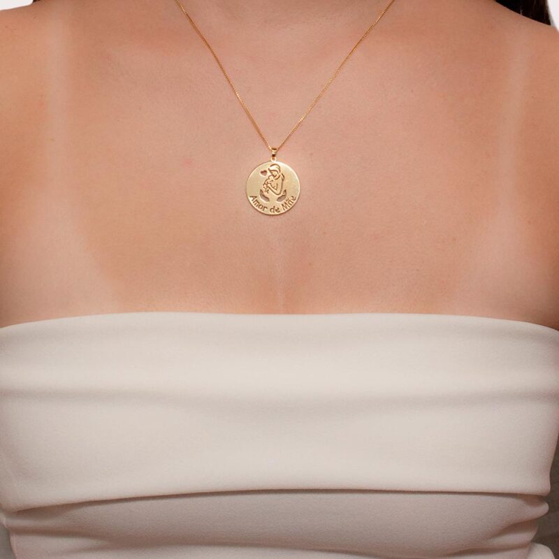 Colar Medalha Amor de Mãe Banhado em Ouro 18k