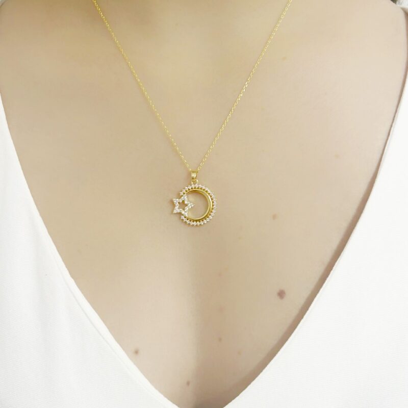 Colar Mandala Estrela Cravejado Banhado em Ouro 18k