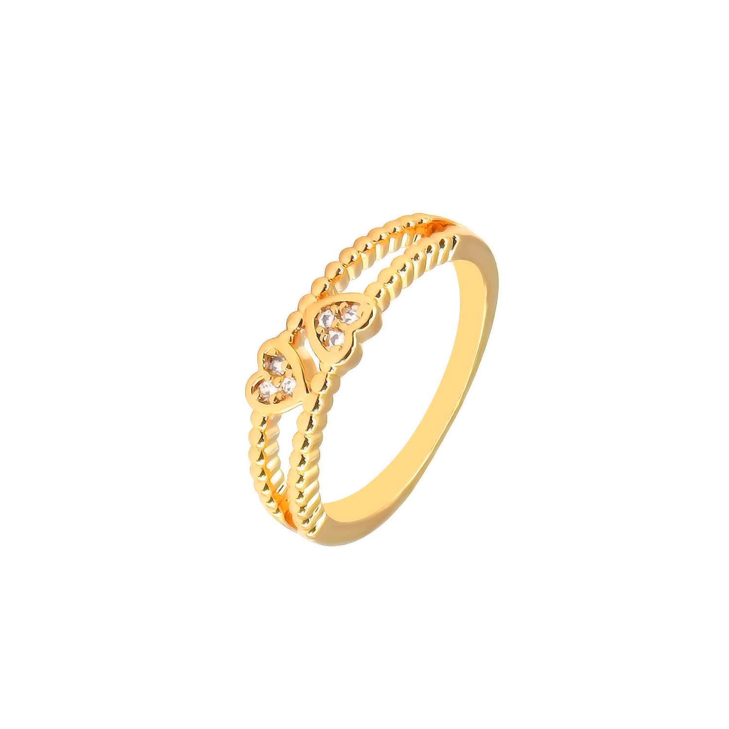 Anel Bolinha Duo Coração Cravejado Banhado em ouro 18k