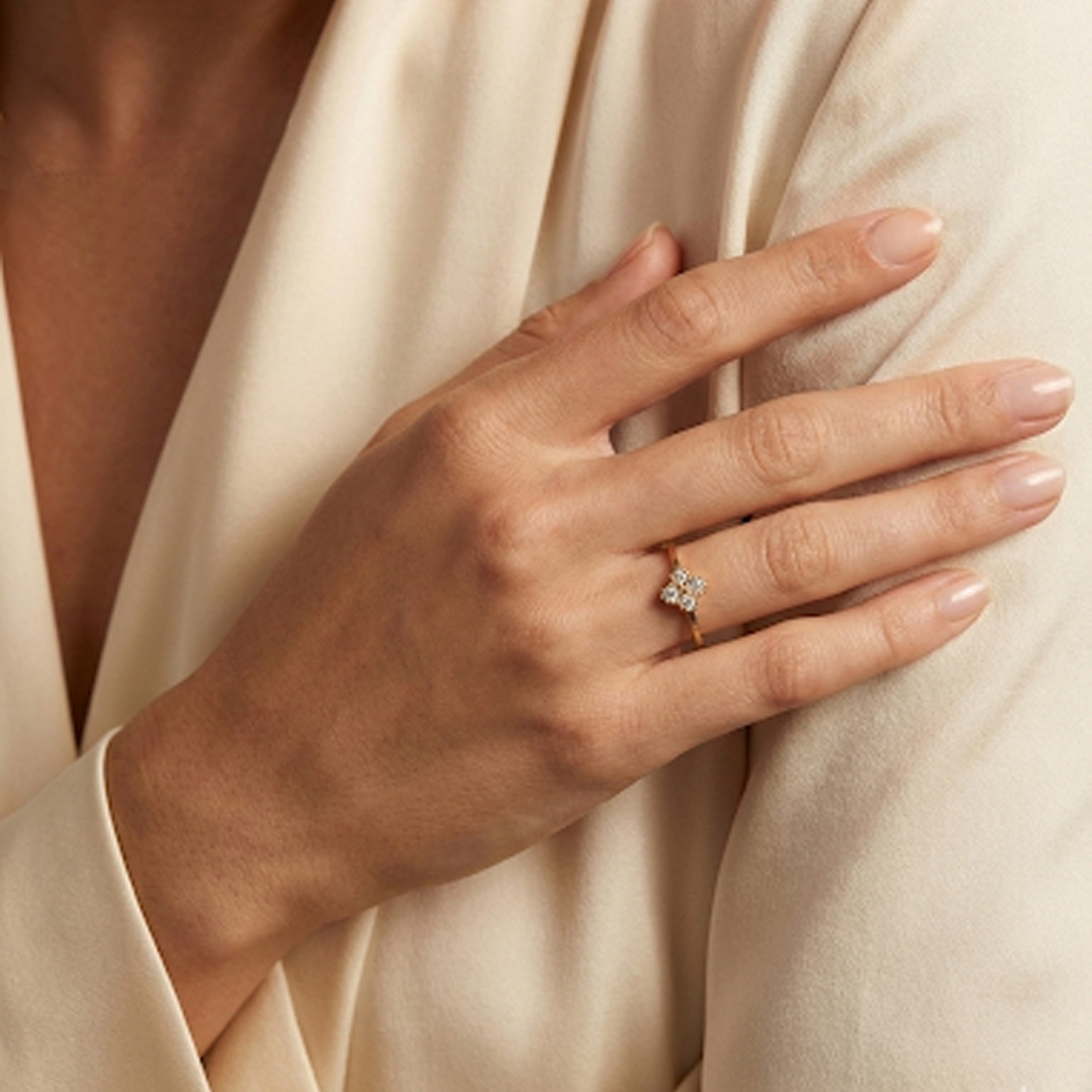 Anel Trevo em aço, delicado e elegante, com design simbólico que adiciona charme e sofisticação ao look diário.