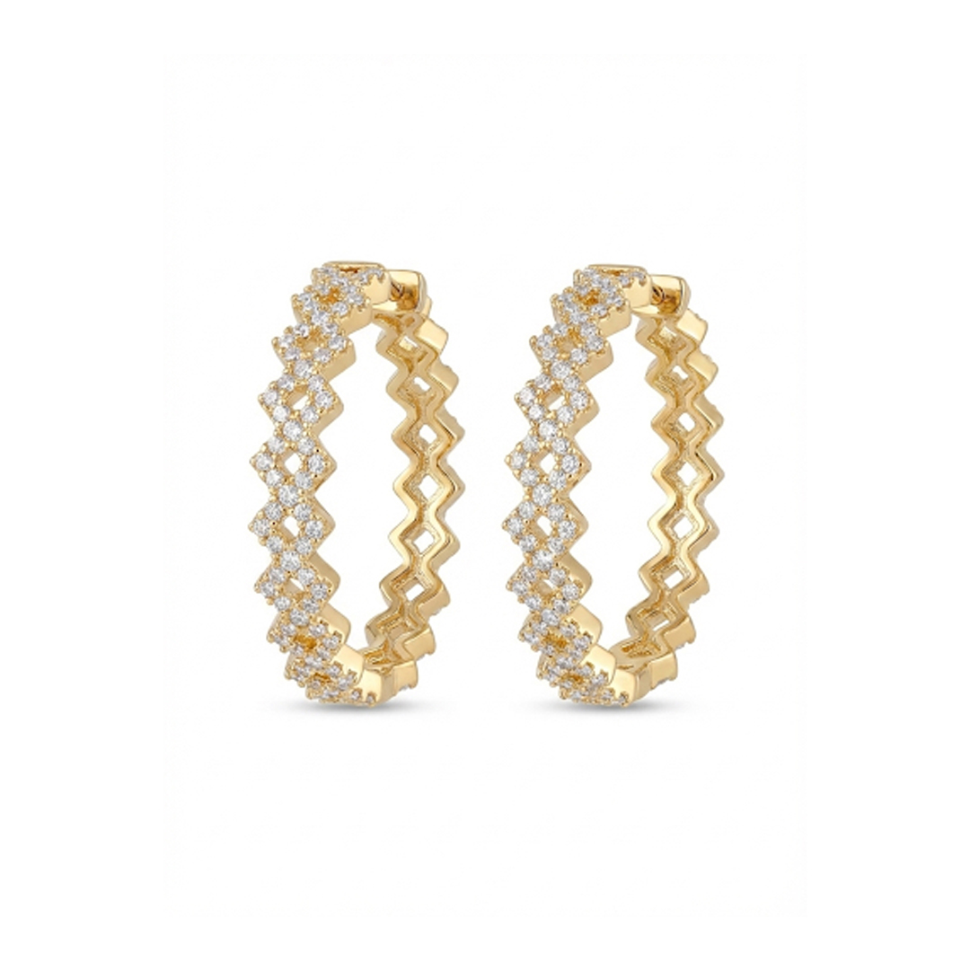 Brinco Argola Hexagonal Cravejada Banhado em Ouro 18k