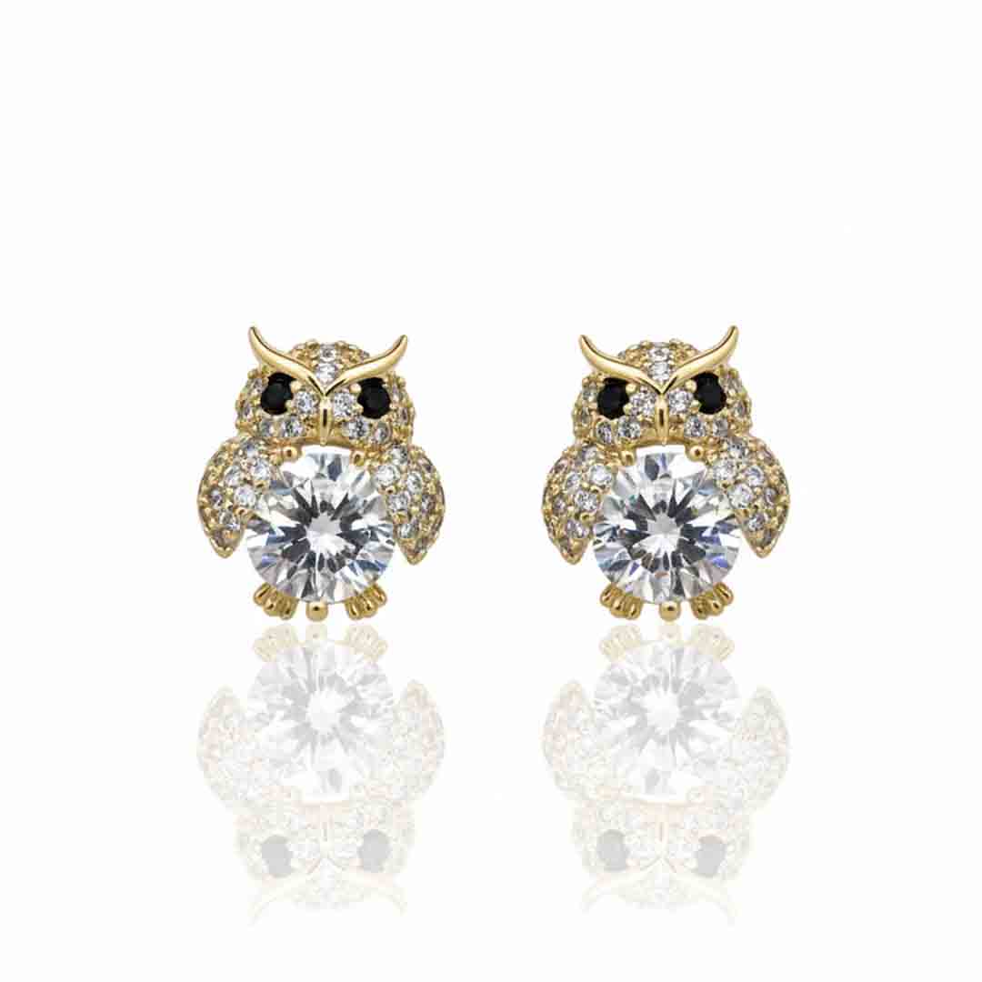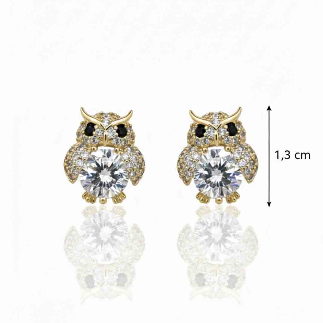 Brinco Coruja cravejado banhado em Ouro 18k com brilho sofisticado e design delicado. Elegante, resistente e ideal para destacar o visual.