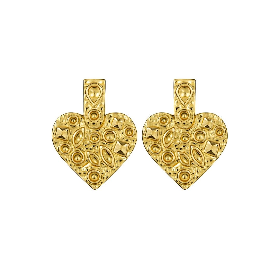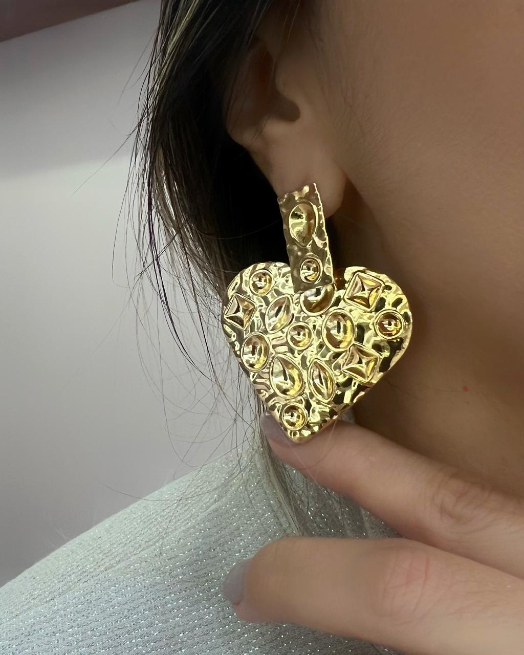 Brinco de Coração Martelado G Banhado em Ouro 18K