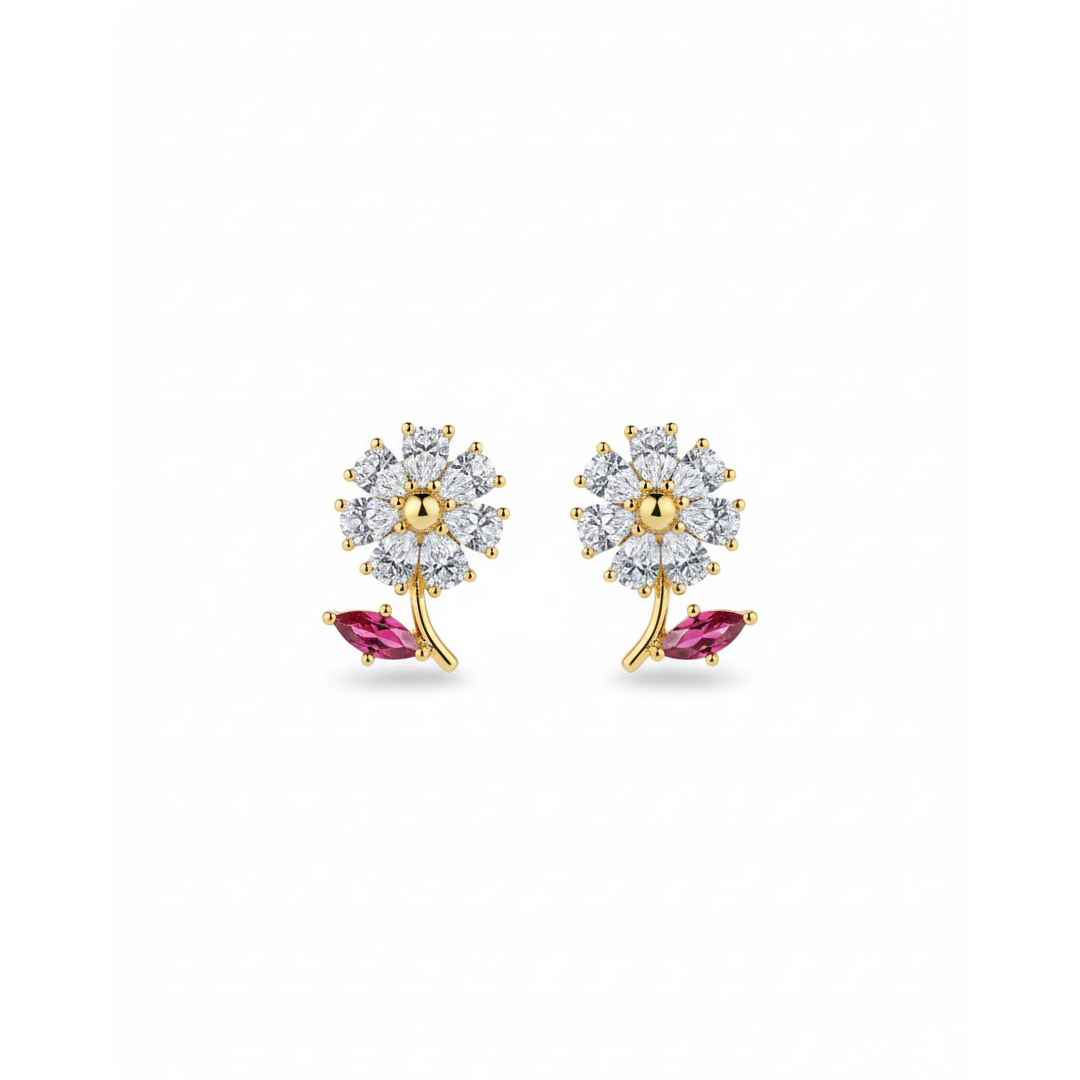 Brinco Flor Cravejado Banhado em Ouro 18k